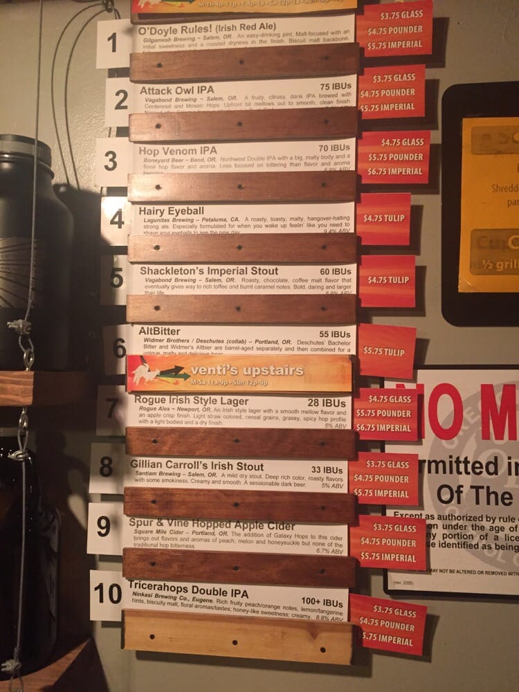 Venti's Cafe + Basement Bar is a new American beer bar located at 325 Court St NE Salem, OR 97301. This hipster, trendy, and casual spot offers a wide range of utilities such as outdoor seating, karaoke, happy hour specials, and a full bar. The menu includes vegan options and caters to different dietary preferences, as praised by customers like Kell L. and Kirsten V. who enjoyed the vegetarian and vegan dishes. Ruth F. complimented the happy hour nachos and Mediterranean rice dish. The service animal-friendly establishment also provides gender-neutral restrooms and is women-owned. With quick service and generous portions, Venti's Cafe + Basement Bar is a must-visit for vegetarians, vegans, and foodies looking for a unique dining experience.